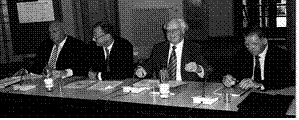 Die an den Vortrag anschließende Diskussion wurde zunächst auf dem Podium geführt zwischen dem Vorsitzenden des Deutschen Richterbundes, Oberstaatsanwalt Christoph Frank, dem Präsidenten der Bundesrechtsanwaltskammer, Rechtsanwalt Axel Filges, und dem ehemaligen Bundesrichter und thüringischen Justizminister, Harald Schliemann. Die Leitung der Diskussion inne hatte der Präsident des Finanzgerichts Hamburg, Dr. Jan Grotheer, seit Jahren maßgeblicher Akteur im Deutschen Richterbund in Sachen Selbstverwaltung.